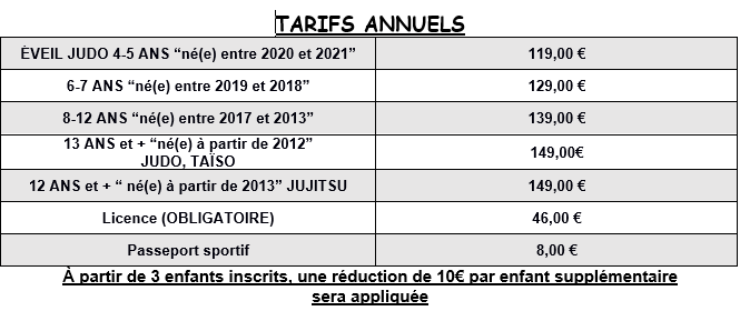 Adultes : Accès au cours de judo, jujitsu et taïso.